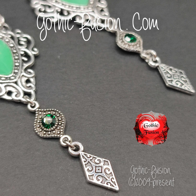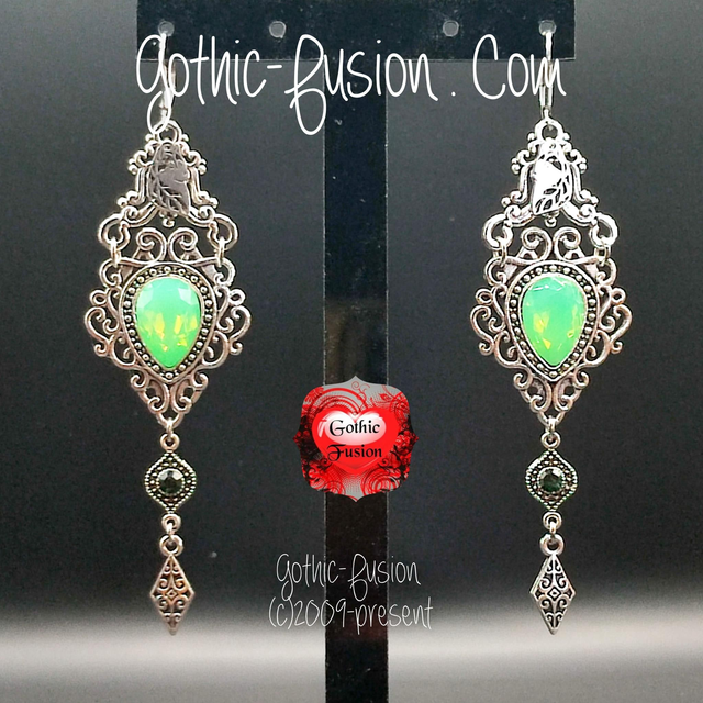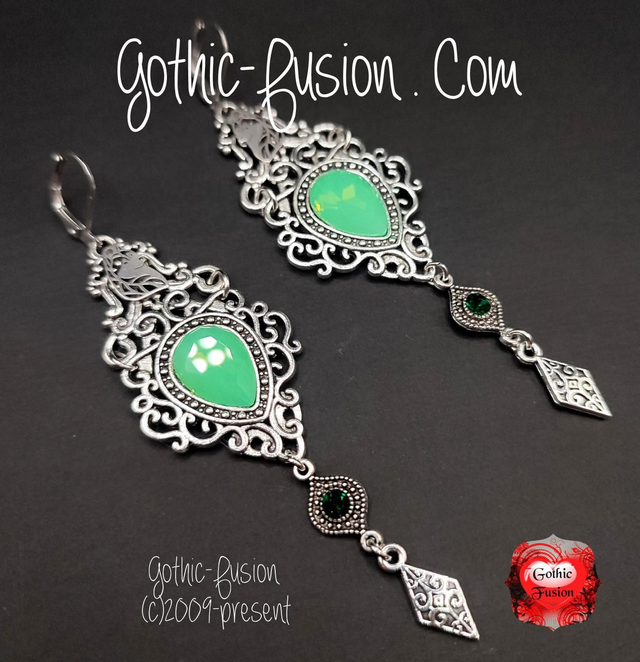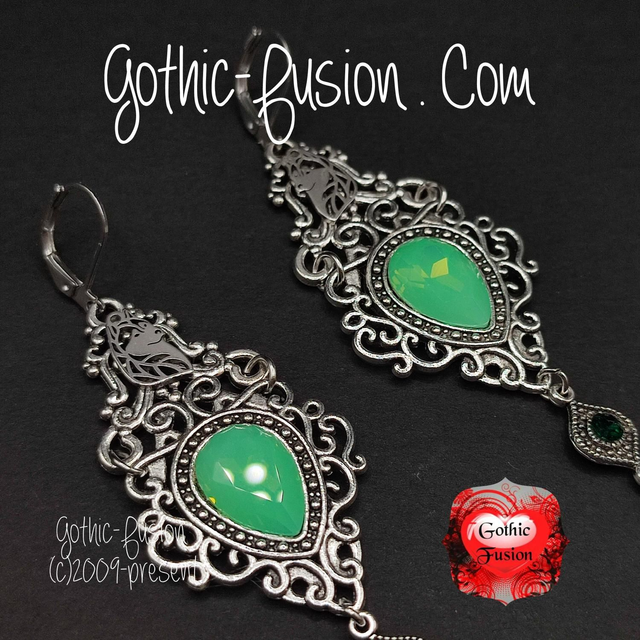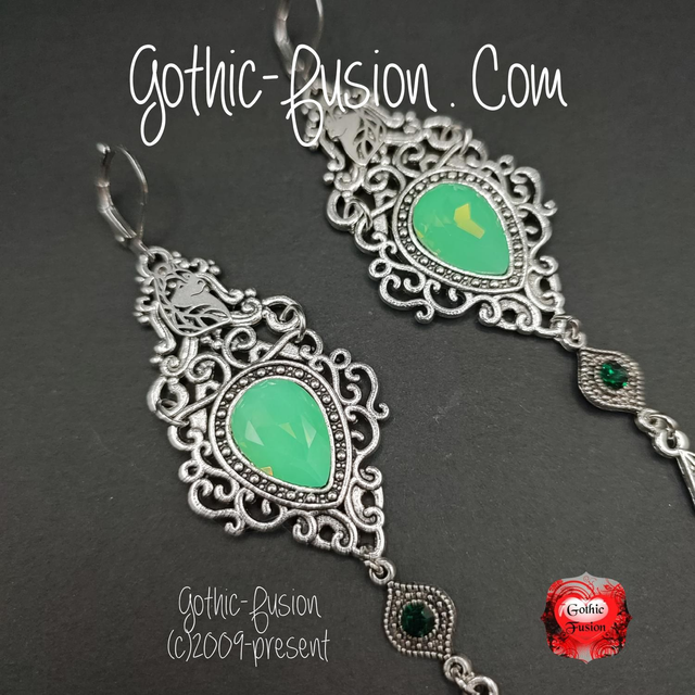 Today I have for you a gorgeous pair of Statement Wolf Earrings with stunning ethereal green peardrops and emerald green rhinestones as the focal 'jewels'.