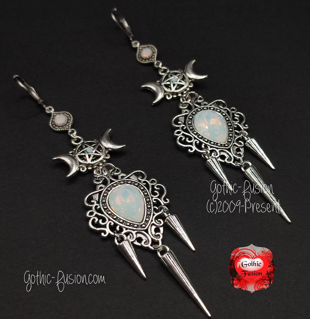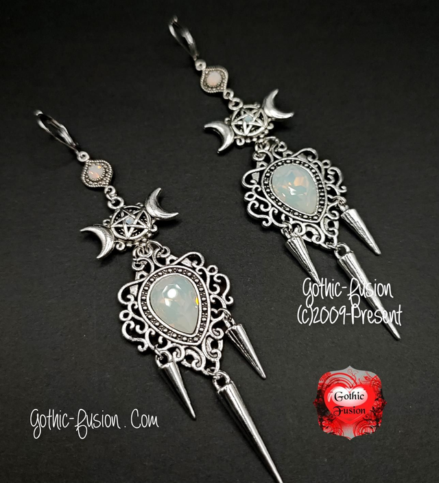 Today I have for you a stunning pair of Triple Moon Goddess Statement Earrings. Created using mixed metals and finished on stainless steel leverback wires for security when being worn.